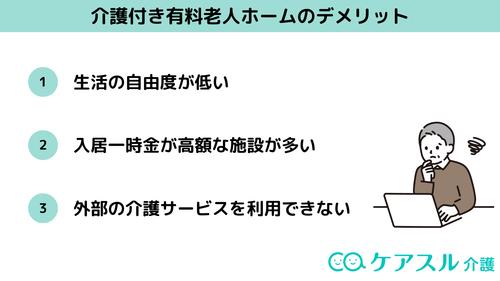 一方で、介護付き有料老人ホームのデメリットは大きく3つです。