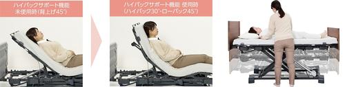 また「ハイバックサポート機能」を活用することにより、臀部を圧迫しにくい背上げができるため、床ずれ予防の効果も期待できます。