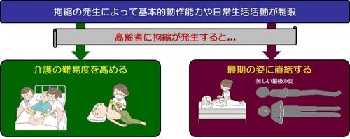 高齢化の進展とともに拘縮の有病率はますます増加することが懸念されています.そして,高齢者における拘縮は介護の難易度を高めるだけでなく,最期の姿に直結します.つまり,「人間の尊厳」を守る意味でも拘縮を予防することは極めて重要ですので,このことをご理解いただければ幸いです.