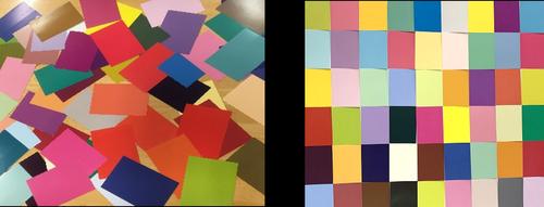 筆者の入院中の認知機能の低下した高齢者に向けた色カルタの実践では、始まりの会(自己紹介や日付の確認)を行ってから色カルタを開始し、終わりの会(その日の色カルタの振り返り、次回の開催日の確認)をもって終了としていました(表1)。色カルタの進め方として、連想しやすい内容(「明るい色はどんな色?」、「春の色ってどんな色?」)から始め、徐々に抽象度の高い内容(「故郷の色はどんな色?」、「子供の頃の色はどんな色?」)へ移行するように調整していました。