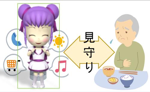そこで、臨床心理学の知見を基にAIとアバター技術を応用し、在宅高齢者の状態を把握しつつ、行動変容を促がし、異常事態をケアセンターへ通報するシステムを開発しています。高齢者の感情・行動を観察するセンサ群と、感情・認知度・行動の解析エンジン、共感と行動変容をうながすアバターとを開発しています。SmartAvatar ®(BOND社)というアバター技術で感情豊かに発話や身振りを表し、高齢者の共感を得ながら日常生活を見守ります。具体的には熱中症やヒートショックを見守るシステムを開発中です。