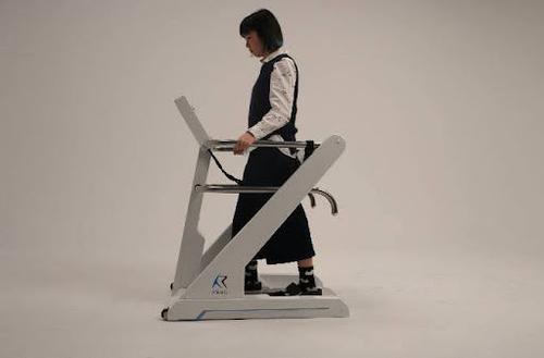 - 高齢者の外出意欲を促がす体重免荷移動支援機((株)菊池製作所)は、体重の一部を保持し、より長距離の移動を助けます。シルバーカーのように前をふさがないため、スーパーなどのドアや商品棚へ手を伸ばしやすい利点があります。