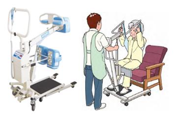 使用例を見てみると、介護を受ける人を人の力で持ち上げず、スタンディングマシーンや移動用リフト等が人の代わりに持ち上げていることがわかると思います。