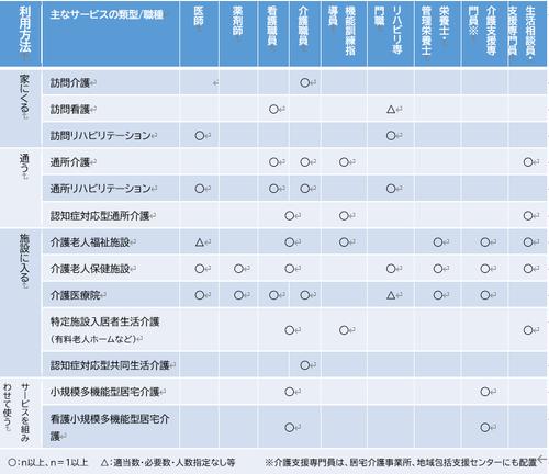 表2)厚生労働省(2023):社会保障審議会介護給付費分科会(第223回) 2023.9.8 資料2「運営基準上配置が必要な職種一覧」一部改変