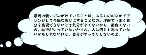 1998年に私がインタビューしたときのAさんは、活動的な60代の女性でした。彼女にとって、装いは自己の一貫性と連続性を表す象徴だったと言えます。彼女の語るストーリーには、幼少期からの衣服への深い愛着、年齢ごとの体型に合わせた衣服選び、社会生活における衣服の役割への洞察が含まれています。インタビュー当時のAさんは「納得できる装い」がしたいと言っていました。その言葉をそのまま聞いてみましょう。