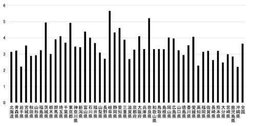 | 千葉県 | 2,861 | 5.88 | 331,143 | 4.37 | 996 | 4.43 |