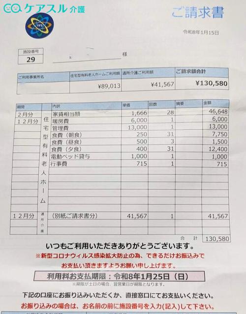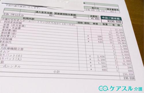 介護付き有料老人ホームの請求書を見ると、使用したおむつや尿取りパッドも請求されています。